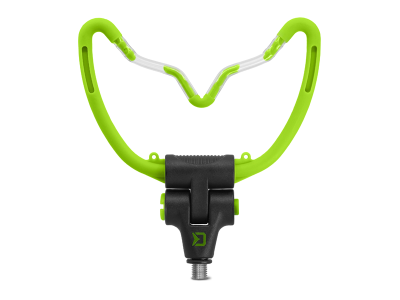 Držiak na feeder tvaru V je univerzálny, spoľahlivý a bezpečný držiak prútu. Tvar V zabezpečuje plynulý chod vlasca počas záberu. Vďaka dômyselnému systému tlačidla v spodnej časti, je možné tento držiak polohovať a následne polohu zaistiť. Šírka ramien je 14,5cm. Užitočným doplnkom držiaka sú očká na uchytenie háčika, do ktorých môžete zachytiť háčik napríklad pri plnení feedrového košíka. Držiak má na tele umiestnené 4 otvory na chemické svetlo, čo oceníte najmä pri nočnom rybolove. Držiak je osadený univerzálnym závitom a je kompatibilný s väčšinou rázsošiek a stojanov dostupných na trhu. Farebná zeleno-čierna kombinácia dokonale dopĺňa feedrovú radu REAXE.