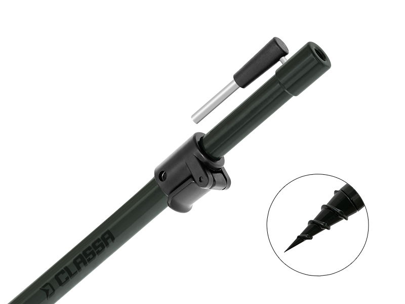 Vďaka ostrému hrotu s vrtákom na konci umožňuje bezproblémové zavŕtanie aj do tvrdších podkladov. Základ tvoria veľmi pevné a hrubé hliníkové trubky, vďaka ktorým zvládne náročné podmienky a zároveň sú základom pre veľmi vysokú životnosť rázsošky.